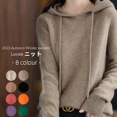 人気なリブニット 初秋/冬 ベーシックニット カシミヤタッチフード付きニット トップス 無地百掛けセーター レディース 怠惰な風カ20代 30代 40代 長袖トップス ニットセーター