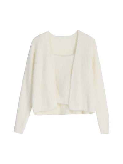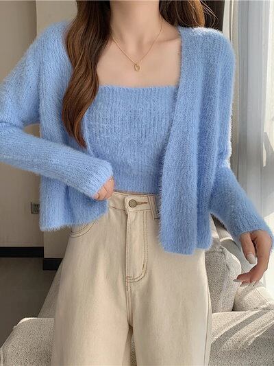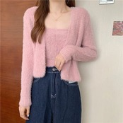 2024 秋冬かわいい人気 トップス 長袖 ニット無地レディースショート 羽織りファッション系韓国ルーズ ネック女っぽカジュアルボレロゆったり 大人っぽ春セーターフレンチ型 2点