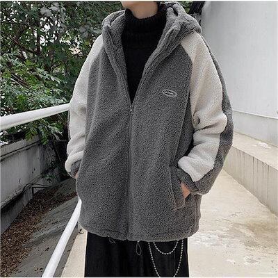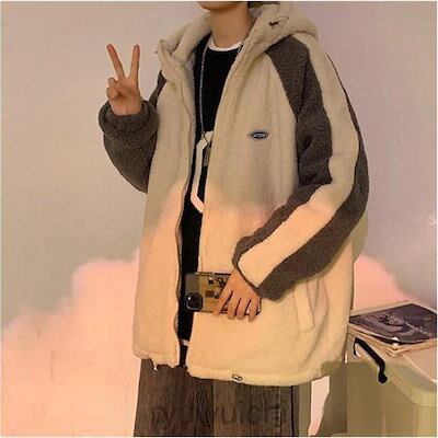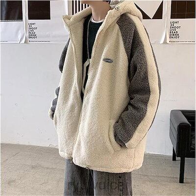 ボアパーカー ボアジャケット メンズ ボア フリースジャケット アウター オーバーサイズ ビックシルエット 秋冬 厚手 防寒防風 フード付き もこもこ