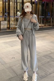 2024初秋新作入荷 涼しく楽ちんセットアップ 三点セット スウェット上下セット パーカー+キャミソール+スウェットパンツ セットアップレディース セットアップ 韓国