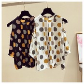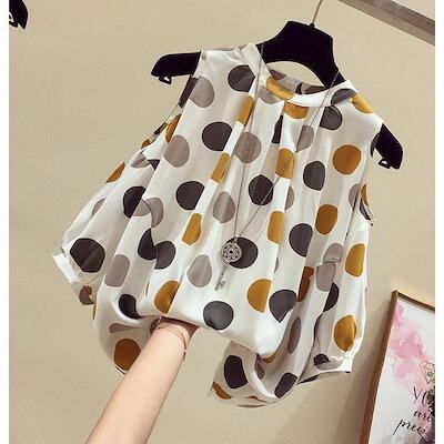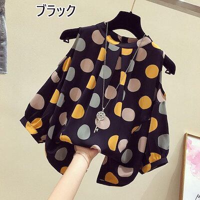 ブラウス レディース 40代 春夏新作 オシャレブラウス シフォンブラウス 肩出し パフスリーブブラウス ドット柄 半袖トップス 大人 通勤 ゆったりシャツ 30代