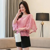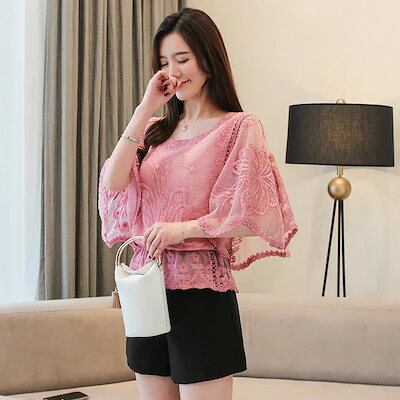 2024 夏 シフォンブラウス レース シアーシャツOL 通勤 韓国ファッション ブラウス レディース シフォンシャツ ロング シフォン/トップス