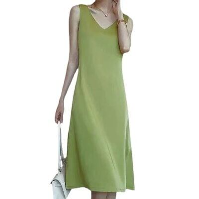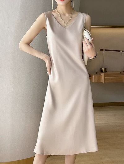 ワンヒース レディース ノースリーブのワンピース じゅんしょく 垂下感 やせて見える 百掛け 夏 韓国 ワンピース キャミワンピース