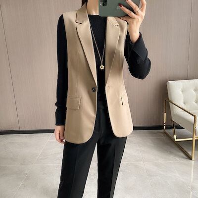 ノースリーブ ベスト ジャケット韓国ファッション 秋 アウター レディース 通勤 タンクトップ ベストレディース アウターVネック スーツ ベスト 秋 ジャケット