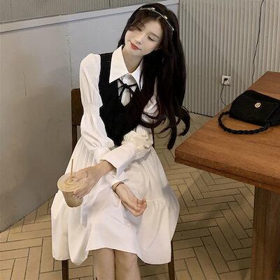 ベスト+ワンピース 2点セットレディース 春秋 長袖 ワンピース 韓国ファッション セットアップ