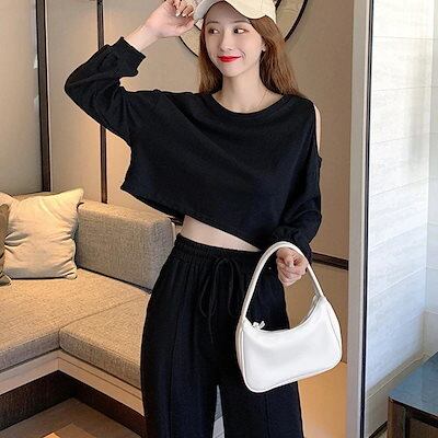 春秋 新作 スウェット+ズボン 2点セット トップス ハイウエスト ワイドパンツ 薄手 セットアップ レディース