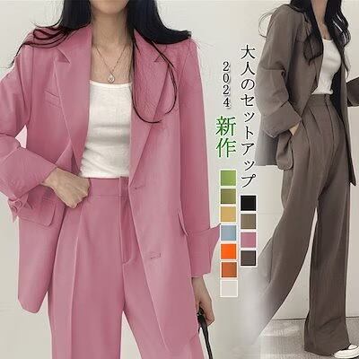 2024新作 シンプル 通勤 パンツスーツ セットアップ レディース スーツ 卒業式 スーツジャケット パンツ テーラード ママスーツ 入園式 入学式 卒園式 フォーマル レディースファッション