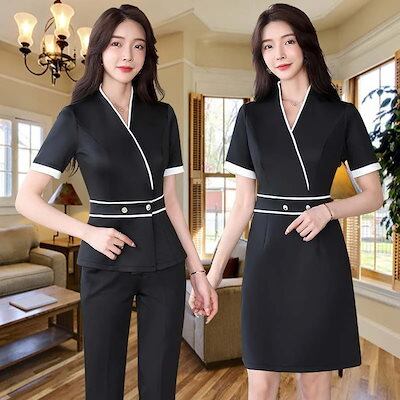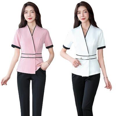 スーツセットアップユニフォーム エステ サロン通勤 レディース 女性 制服おしゃれ エステ制服半袖 七分袖 ジャケット2点セットシャツ+ズボン涼しく楽ちんセットアップ18w