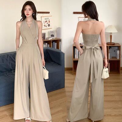 2024春夏オーバオール サロペット つなぎ ノースリーブ ロングパンツ 白 ホワイト さくらんぼ チェリー かわいい おしゃれ カジュアル 夏 韓国ファッション レディース お出かけ