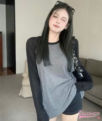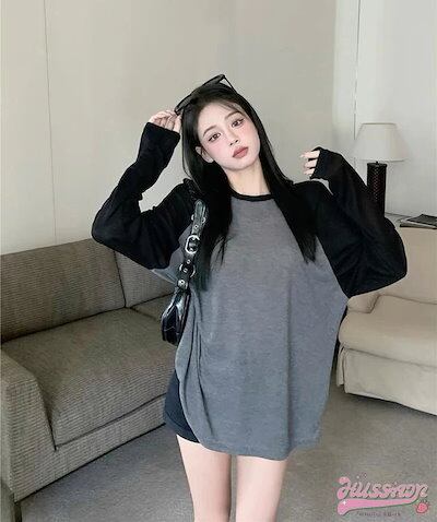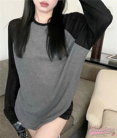 2024春夏 トップス Tシャツ ラグラン 長袖 丈長め ラウンドネックシルエットゆったり リラックス シンプル かわいい カジュアル韓国ファッションスリーブサイズお出かけT