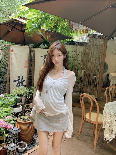 2024 春夏 女度を格上げ tシャツ ファッション トップス ショート丈サイズ 韓国 長袖T薄手 フィット ネックプリント レイヤードT重ね着 肌見せ 女っぽハイフレンチタイトシルエットレディース