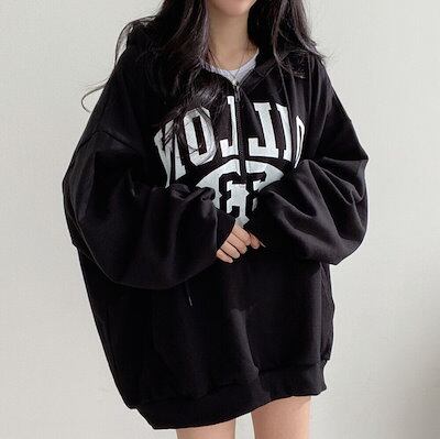 2024 秋冬2カラー プルオーバー ハーフ パーカー ロゴプリント 裏起毛 トップス 韓国ファッション レディース ストリート系女子 カジュアル