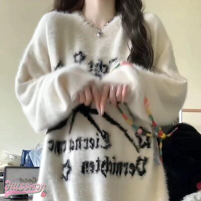レイジースタイル 長袖 ニット セーター トップス クルーネック ストリート カジュアル シルエット 色っぽ 女っぽ カジュアル 大人っぽ 上品 サイズ ゆったり レディース ゆったり 秋 冬 春