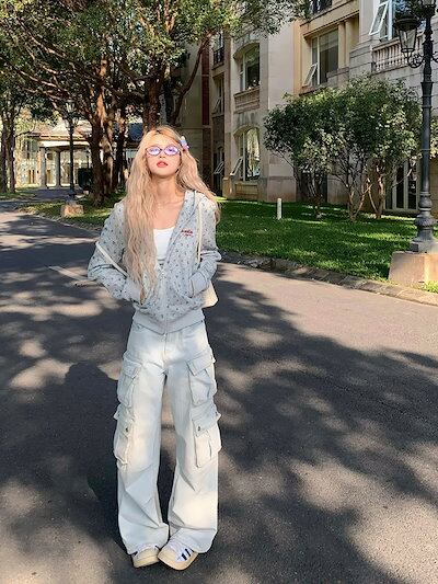 2024秋冬 デニムパンツ ボトムス ハイウエスト ジーンズ K-POP ファッション系韓国風スタイル ゆるダボウェア練習ジーンズ シルエット加工ゆったり レディース カジュアル型 春夏 メンズライク