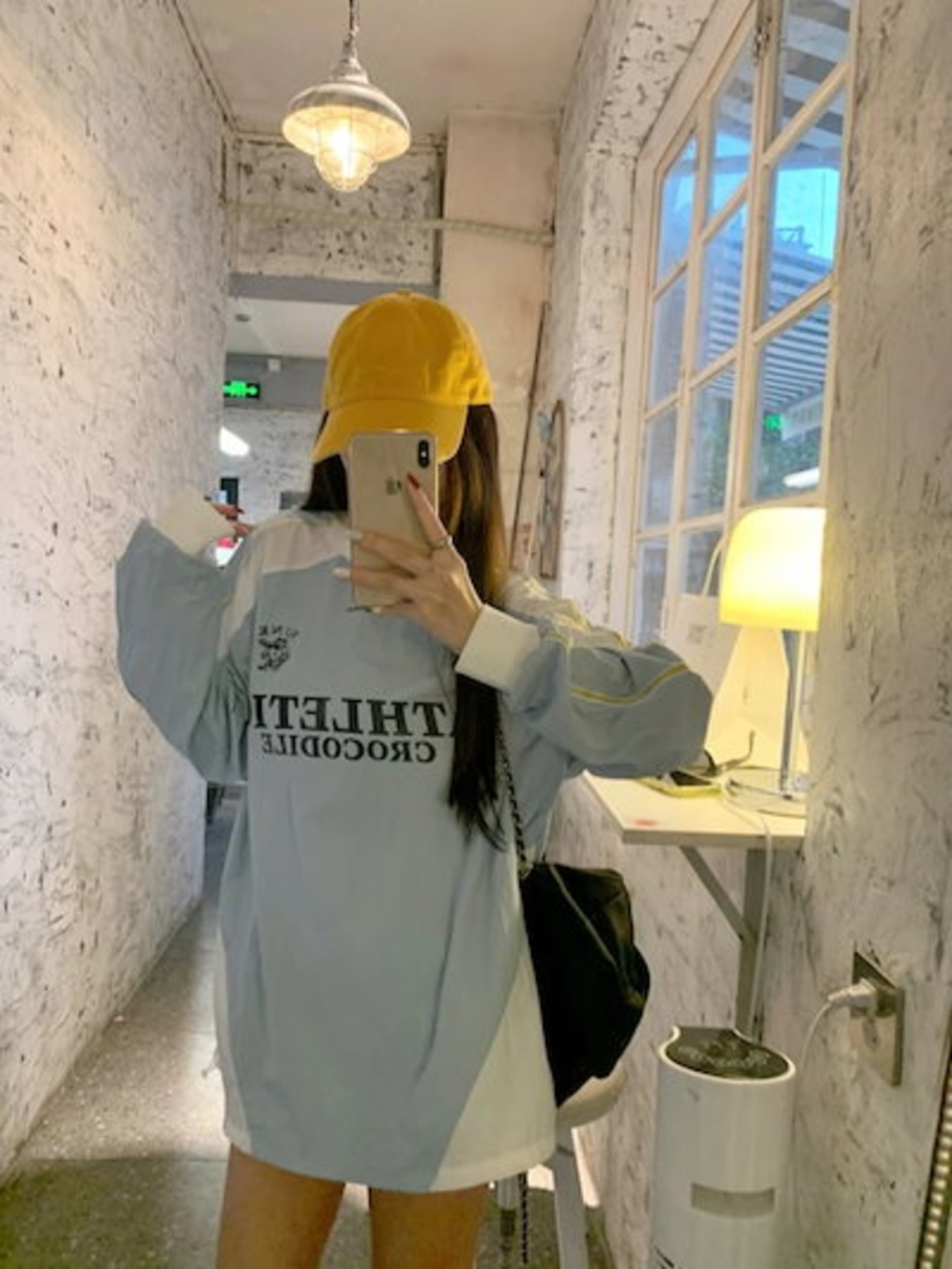 2024 秋冬 トレンド トップスバイカラー長袖 薄手 かわいいK-POPTロング黑白レディース韓国風ロゴ衣装ルーズゆったりカジュアルおしゃれサイズスリーブシルエットファッション系サイドシャツフット