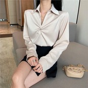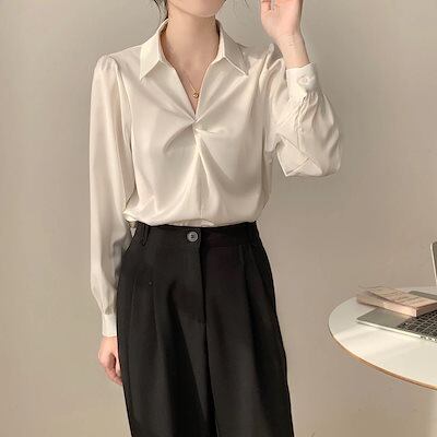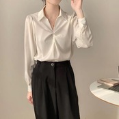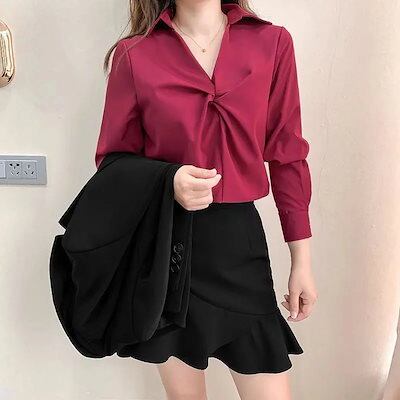 【3日間発送】 2024 新作 秋今っぽシアーシャツ 秋シフォン白シャツ女性長袖Vネックブラウストップス