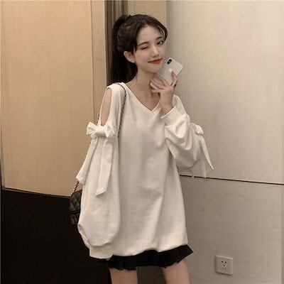 2024 秋 新 パーカー 蝶結びストラップレストップレディース秋薄手長袖セーター トップス レディース 春 秋 韓国ファッション