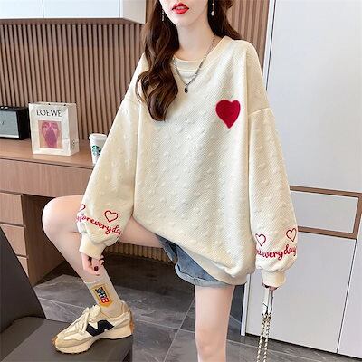 2024 秋 新 パーカー 個性 刺繍 スウエット 長袖 百掛け ゆるい トップス 丸ネック トップス レディース 春 秋 韓国ファッション