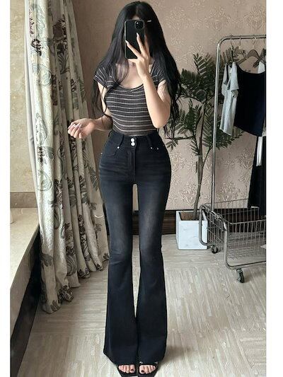 2024 初秋 デニムパンツ パンツ デニム ジーンズ スキニー ワイドレッグ ハイウエスト 脚長効果 美脚効果 細見え ダメージ加工 白 水色 カジュアル おしゃれ かわいい 韓国ファッション