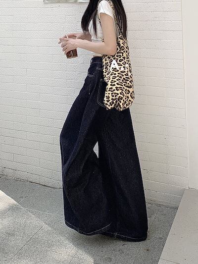 2024 初秋 デニムパンツ パンツ ロング丈 デニム ジーンズ ワイド ストレート ハイウエスト 美脚効果 脚長効果 細見え レトロ インディゴブルー レディース かわいい お 韓国ファッション