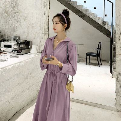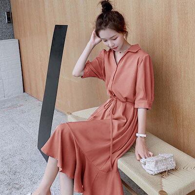 ワンピース 夏新作 ウエスト引き締め 着痩せ シャツワンピ 気質 オールマッチ シフォンドレス ロングワンピース