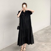 夏新作 半袖 ワンピース 韓国 ゆったり 着痩せ ロングドレス 学院風 Aラインスカート Tシャツワンピース