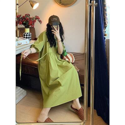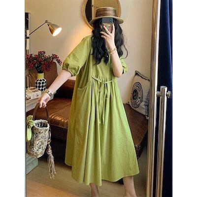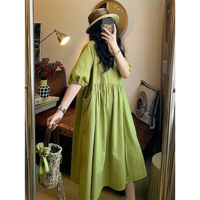 コットン ワンピース サマー ゆったり 大きいサイズ ロングドレス レディース カジュアル Tシャツワンピース