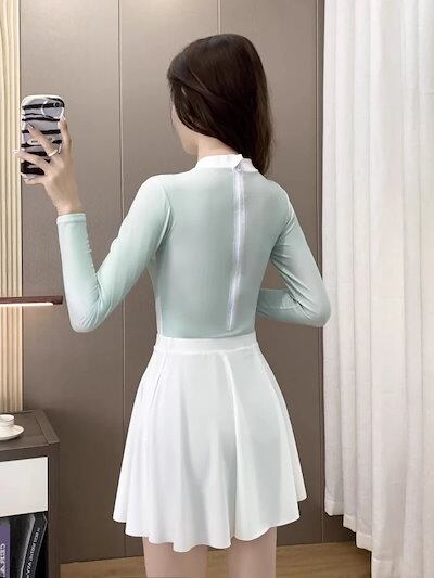 水着 2024 新作 連体遮腹痩せ長袖日焼け止めスポーツ水着 着痩せ 韓国ファッション 着痩せ 水着 Swimwear