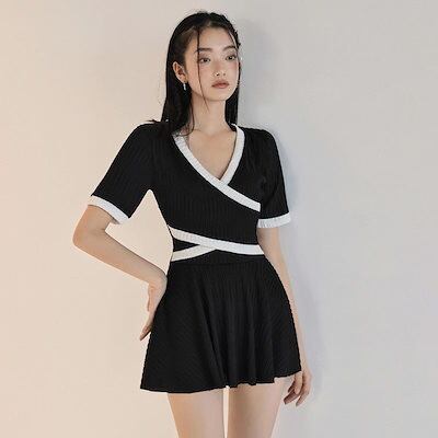 水着 2024 新作 腹部を隠して痩せて見える連体ins風純欲水着 着痩せ 韓国ファッション 着痩せ 水着 Swimwear