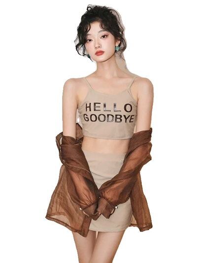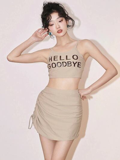 水着 Swimwear 2024 人気 キャミソールスカート式セパレート水着ハイウエストスカート腹部カバー長袖日焼け止め温泉水着 韓国ファッション 水着 涼しく楽ちんセットアップ
