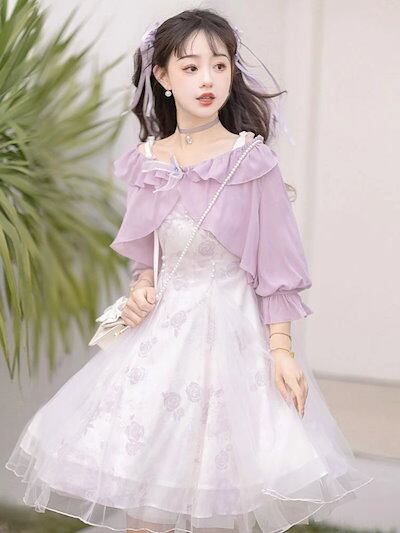 ロリータ コスプレ 2024 春夏 新作 着痩せ チャイナドレス ワンピース 二点セット