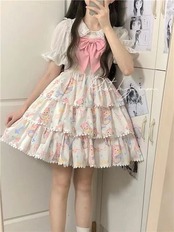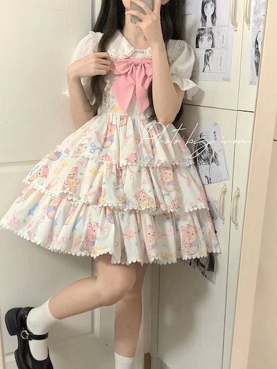 ロリータ コスプレ 2024 春夏 新作 着痩せ シャツ+ワンピース 可愛らしい 蝶結び 二点セット