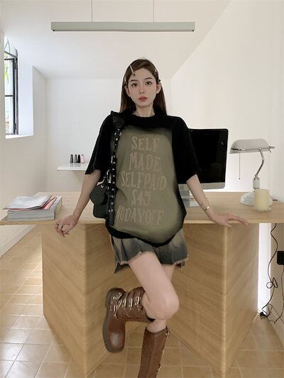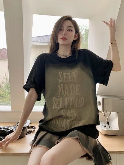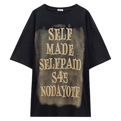 半袖 Tシャツ ロンT 英字 プリント 着痩せ レトロ カットソー ラウンドネック プルオーバー ゆったり トップス レディース 春 夏 カジュアル ファッション