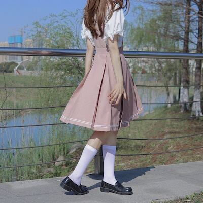 JK 制服 日系 ワンピース セット 新作 キャンパス風 二点セット シャツ+ワンピース
