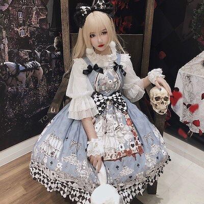 コスプレ2024 新作 スカートゴシックレトロ喪アリスLolitaワンピースjsk吊りスカートサンタコスプレ