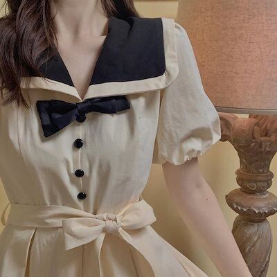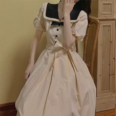可愛い セーラー服 ワンピース 着痩せ 2024 レディース 秋 海軍領 セミロング ワンピース