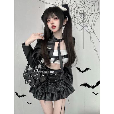 サンタコスプレ 2024 秋 着痩せ 新作 黒の機関車服 ショット丈 トップス 三点セットサンタコスプレ