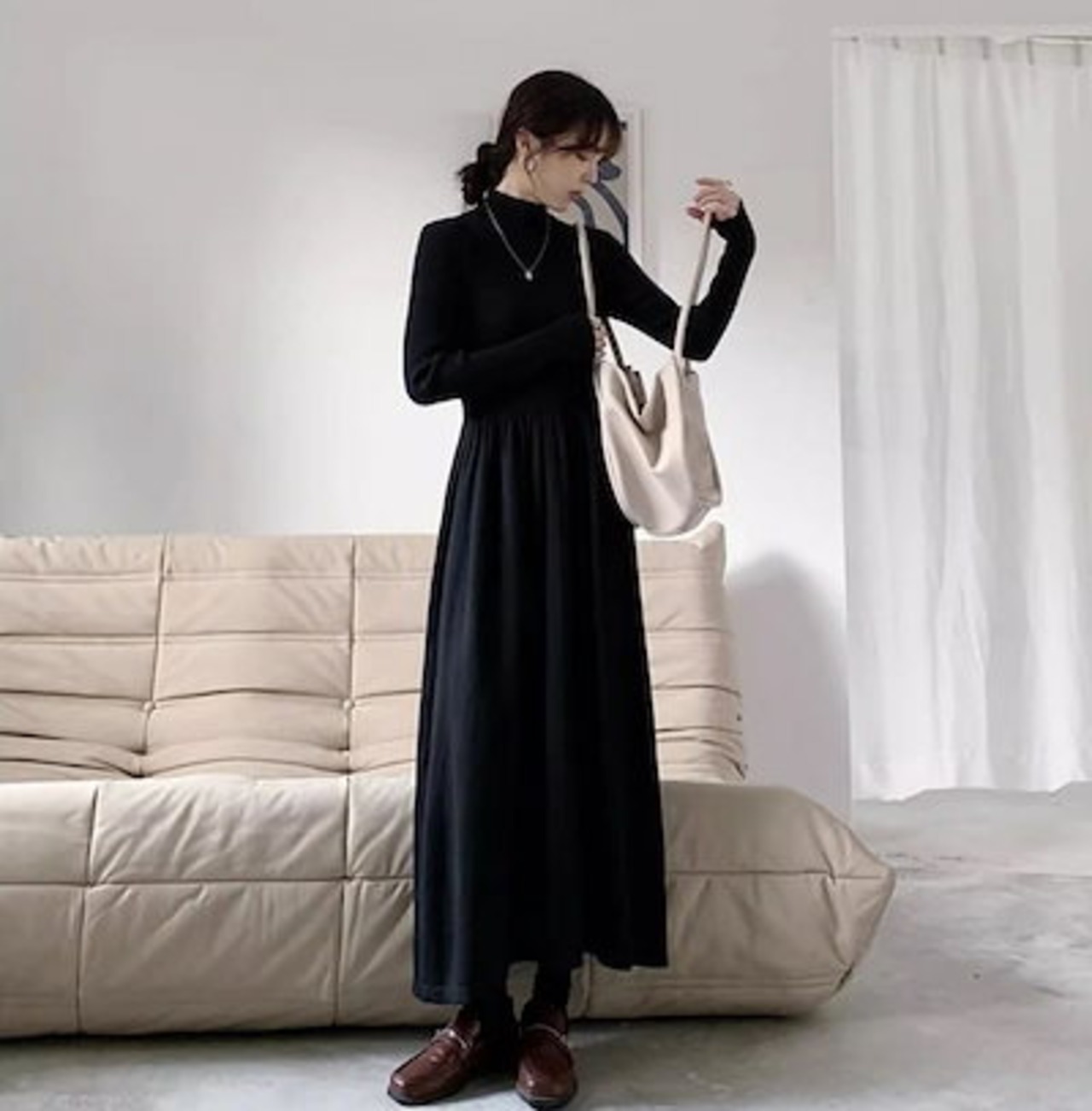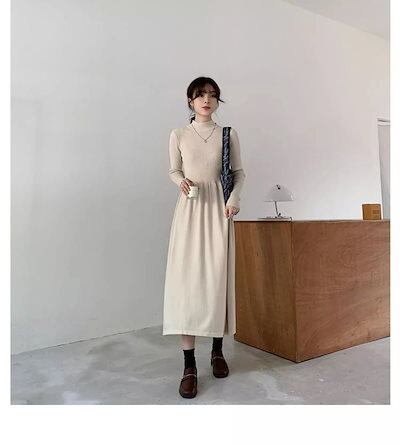 ワンピース 秋冬 インナー ワンピース ドレス 着痩せ パーティードレス スリミング ハイネック アンダーウェア