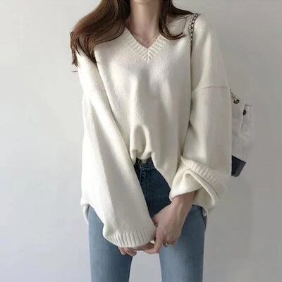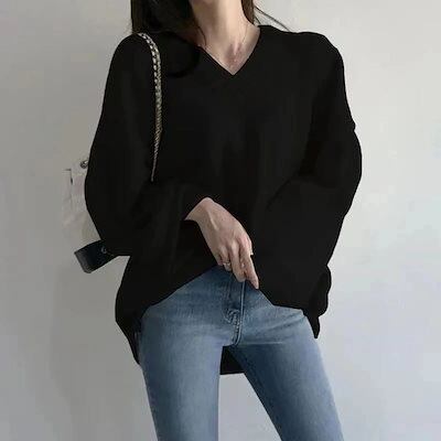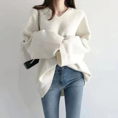 ベ一シックニット ニットセーター アンダーウェア トップス 暖かい スウェット インナーセーター レディース 厚手 ブラウス 気質 Vネック