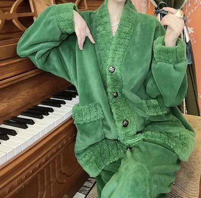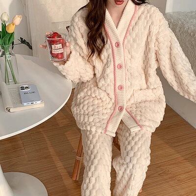 可愛い おしゃれ 柔らかい スイート ウォーム 柔らかい コーラルフリース パジャマ カジュアル フランネル ホームウェア