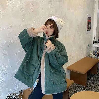 秋アウター韓国ファッション 裹起毛 コート冬コートゆったりカジュアルファッション 人気ボアアウターキルティングアウターカシミヤタッチ