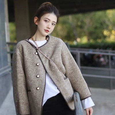 ひと足お先にボア2022冬の新作韓国版女性用ショート丈気質ノーカラーコートスリム見えライダース人気ボアアウターキルティングアウター