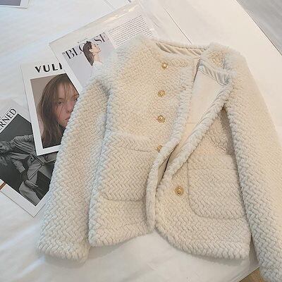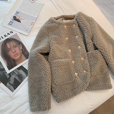 ダウンジャケット人気ボアアウターレディース ラムズフリース 秋冬 オールマッチ ゆったり ショット丈 丸ネック気質ノーカラーコートスリム見えライダースキルティングアウター