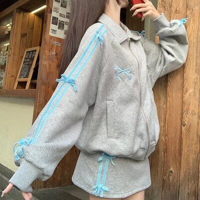 2024 秋 上下2点セット トップス お出かけ 羽織り ショート丈フルラウンドヘム ミニ丈ボトムス ストレート系冬ゆったりレディーススタイルアップワイドお出かけトラック