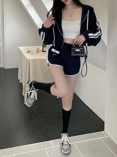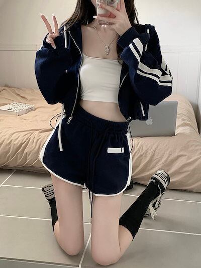 2024 秋 上下2点セット トップス お出かけ 羽織り ショート丈フルラウンドヘム ミニ丈ボトムス ストレート系冬 ゆったりレディースハーフスタイルアップワイドお出かけトラック