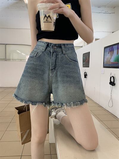 2024 春夏パンツ デニム ジーンズ ショート丈 フリンジ ハイウエスト 美脚効果 脚長効果 細見え 夏 おしゃれ かわいい 韓国ファッション レディース お出かけ