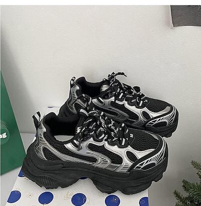 2024秋 好感度UP カジュアル ファッション系 PU 丸トゥ 切り替え スニーカー シューズ 靴 春 夏 冬