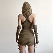2024春夏 ワンピース フード付き かわいい ミモレ丈 ジャンパースカート キャミソール フロントオープン アーム春秋 韓国系ファッション レディース おしゃれ かわいい