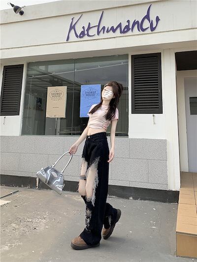 2024春秋デニムパンツ ボトムス ジーンズ ファッション系スタイル ゆるダボ ジーンズ シルエット加工 カジュアル 夏 メンズライク