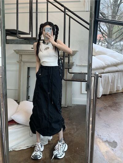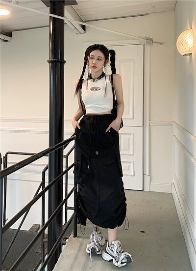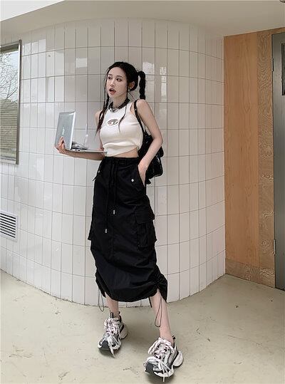 2024 春秋 スカート ロング丈 ポケット ハイウエスト マキシロング スカート ロング スカート 美脚効果 脚長効果 細見え 夏 おしゃれ かわいい サイド韓国系ファッション レディース お出かけ